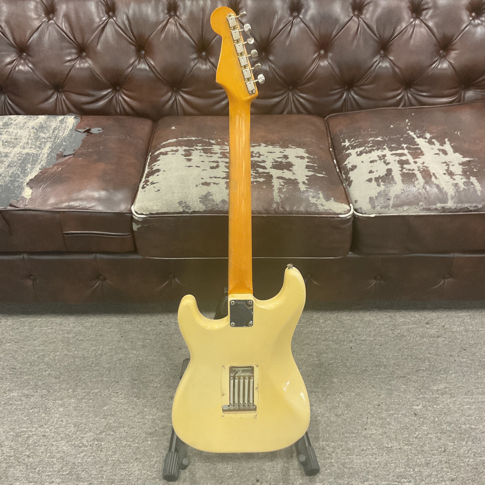For sale is a 1962 Fender Stratocaster Custom Shop Refinished White, w/ Fender hard shell white case, original single line Kluson deluxe tuning machines, original tremolo, non-original set screws, refretted, non-original nut, original pots & tone cap, non-original 5 way switch & screws, non-original wiring, alder body, refinished in solid cream white, extra route for a middle pickup, maple neck, Brazilian rosewood roundboard w/ clay dots, over sprayed w/ amber tint, 2NOV62B, original neck pickup & non-original middle & bridge pickup, missing tremolo spring cover & screws, fingerboard radius 7 1/4", weight 7.7 lbs, condition is very good -- see pics for more details.
