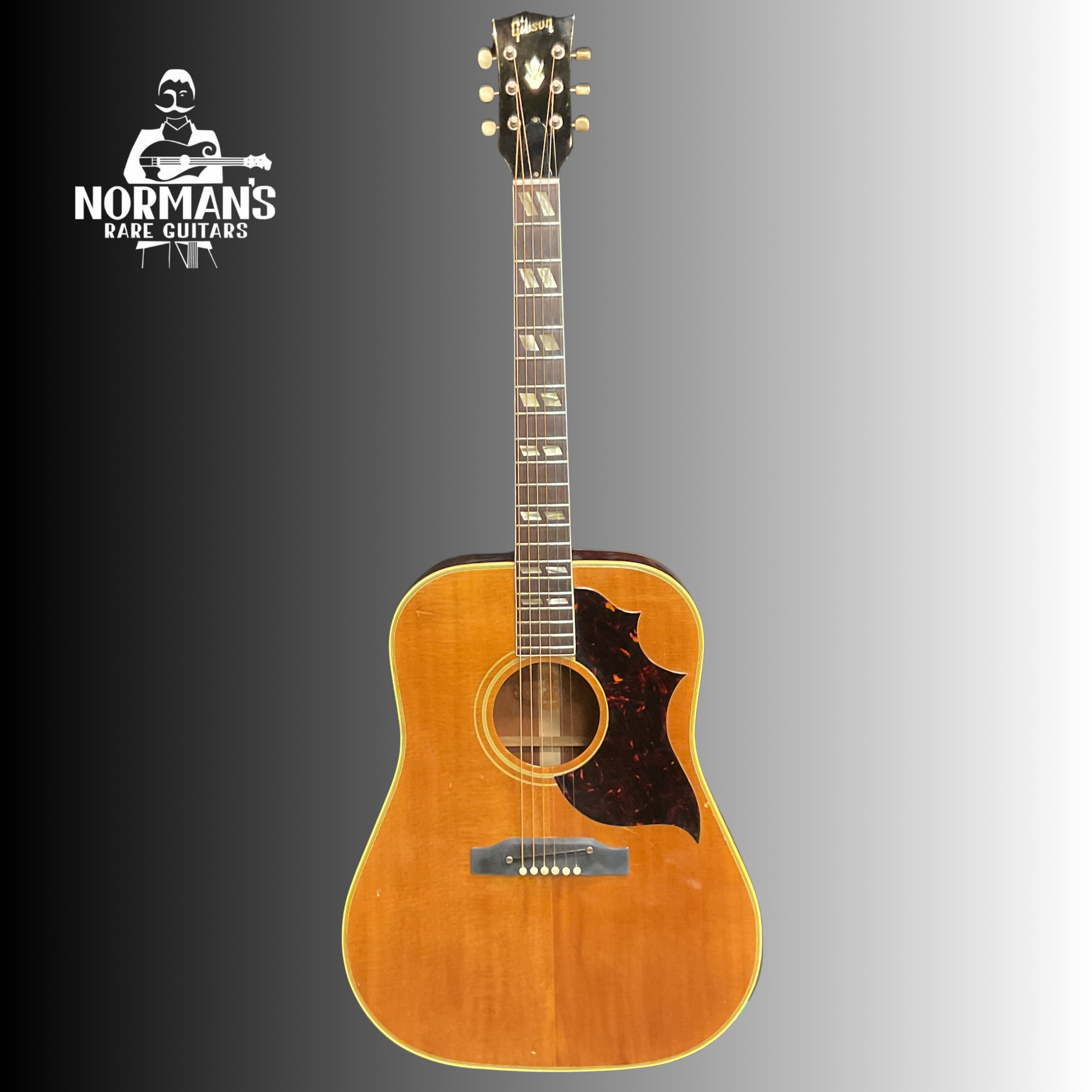 For sale is a 1963 Gibson Country Western Acoustic Natural, w/ original hard shell case, original single line Kluson deluxe tuning machines, original plastic ADJ bridge w/ rosewood ADJ saddle, original frets, spruce top, mahogany back & sides, mahogany neck, rosewood fingerboard, fingerboard radius 12", weight 4.46 lbs, condition is very good -- see pics for more details.