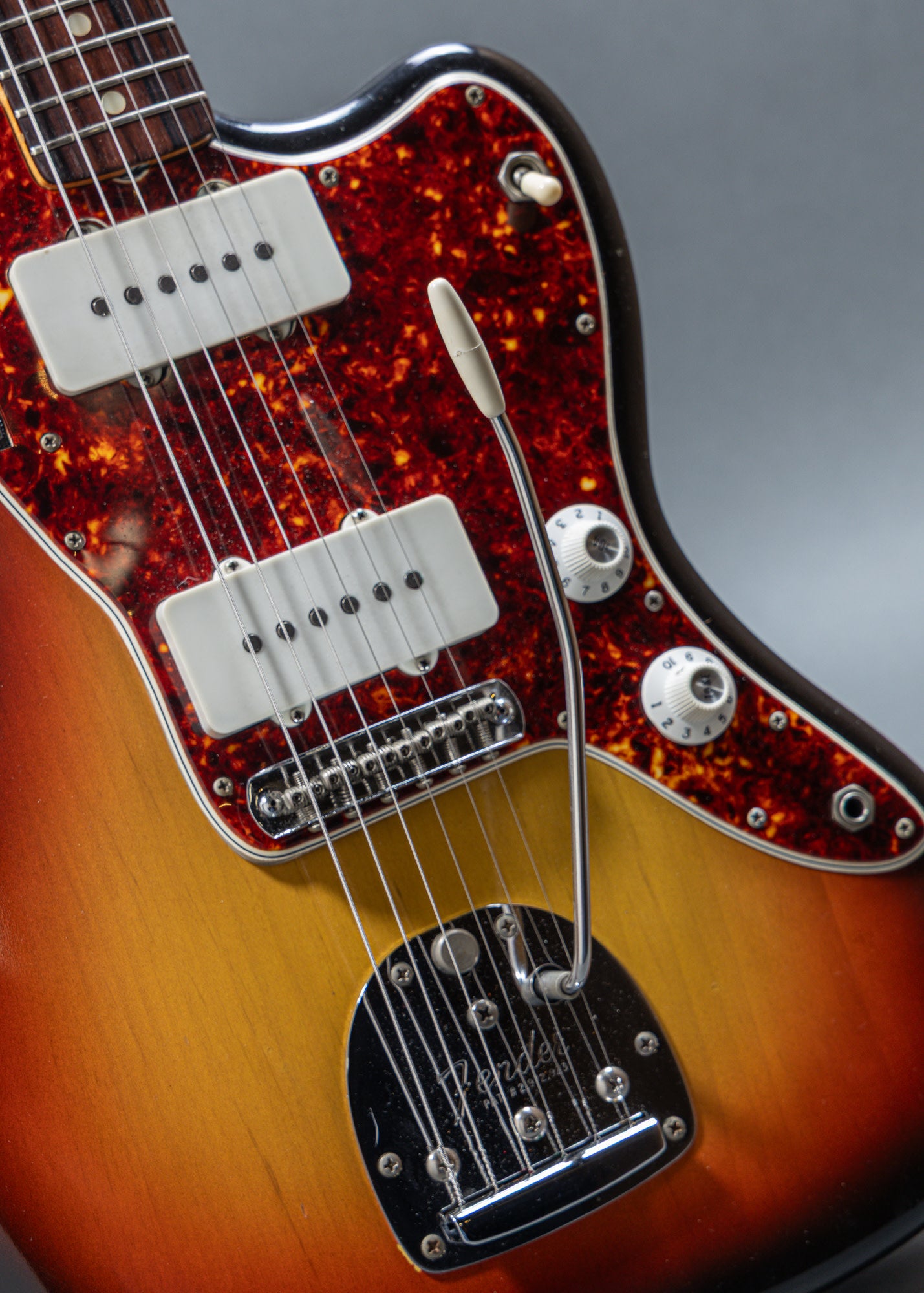 A 1965 Fender Jazzmaster in a Sunburst finish is a vintage electric guitar made by Fender in 1965. This year is significant as it marks the transitional period when the company was sold by Leo Fender to CBS. The specific number of Jazzmasters made in 1965 is not a publicly tracked statistic, but production numbers were generally lower than those of the Stratocaster or Telecaster, and precise figures are not available.