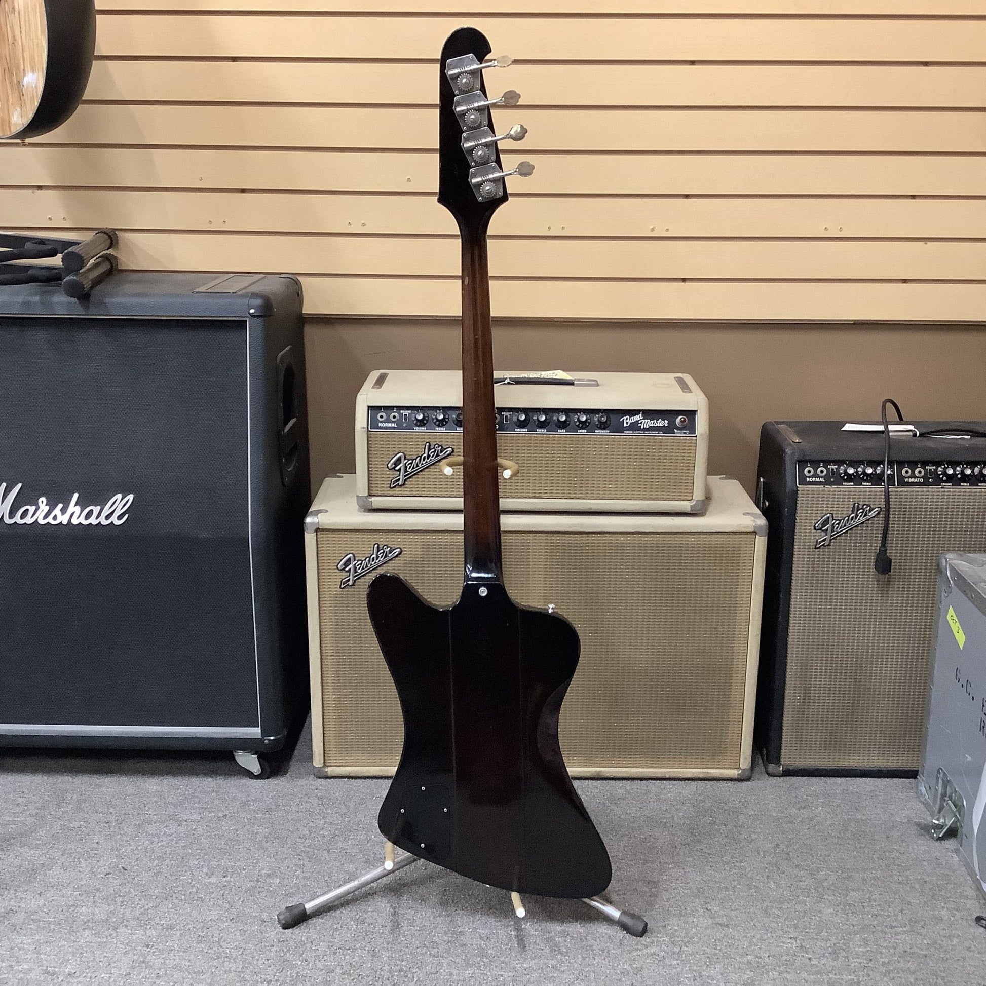 For sale is a stunning 1965 Gibson Thunderbird Bass in a sunburst finish with a white 'thunderbird' etched pickguard, black finger rest, original reverse tuners, original hardware, original two studs with copper plate mute bridge, frets are all original, original parts and wiring for electronics, mahogany body, mahogany neck, Brazilian Rosewood fingerboard, original pickup, pickup fence and bridge cover are missing, no cracks or breaks in the bass-see pictures for more details!