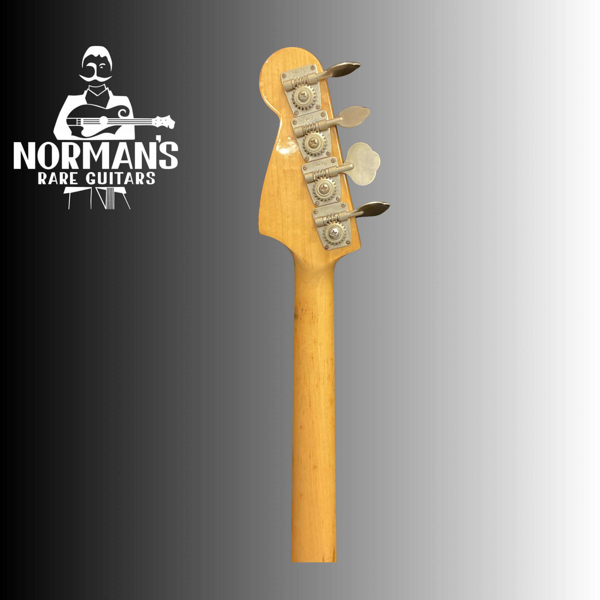 A 1971 Fender Mustang Bass Competition Red is a specific vintage electric bass guitar known for its short 30-inch scale length and a red finish with racing stripes. It features an alder body, a maple neck with a rosewood fretboard, and a split-coil pickup. The "Competition" designation refers to the distinct racing stripe design, which was an optional finish available from 1969 until 1972.