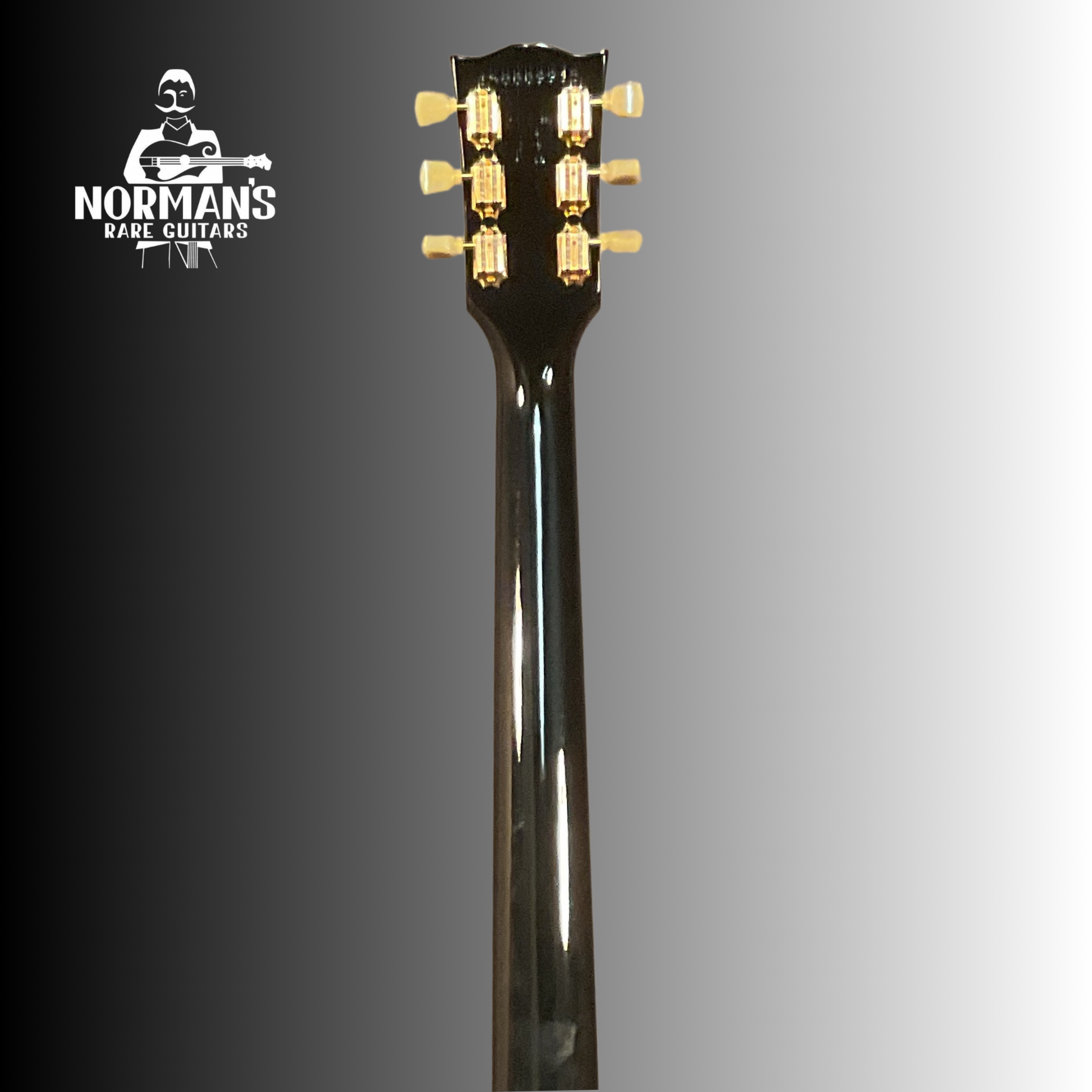 The 2015 Gibson SG Custom in Ebony (Black) is a high-end Custom Shop "Tuxedo" model, characterized by its luxurious gold hardware, three-pickup configuration and bound ebony fingerboard with mother-of-pearl block inlays. Produced around late 2014 to early 2015, these guitars were built to 1960s SlimTaper specifications. While 2015 USA models featured controversial tech updates, Custom Shop versions generally retained traditional, premium specifications. Specific, limited, or Made-to-Measure production numbers were generally low, making these premium, hand-crafted SG Customs relatively rare, often produced in small batches rather than mass quantities.