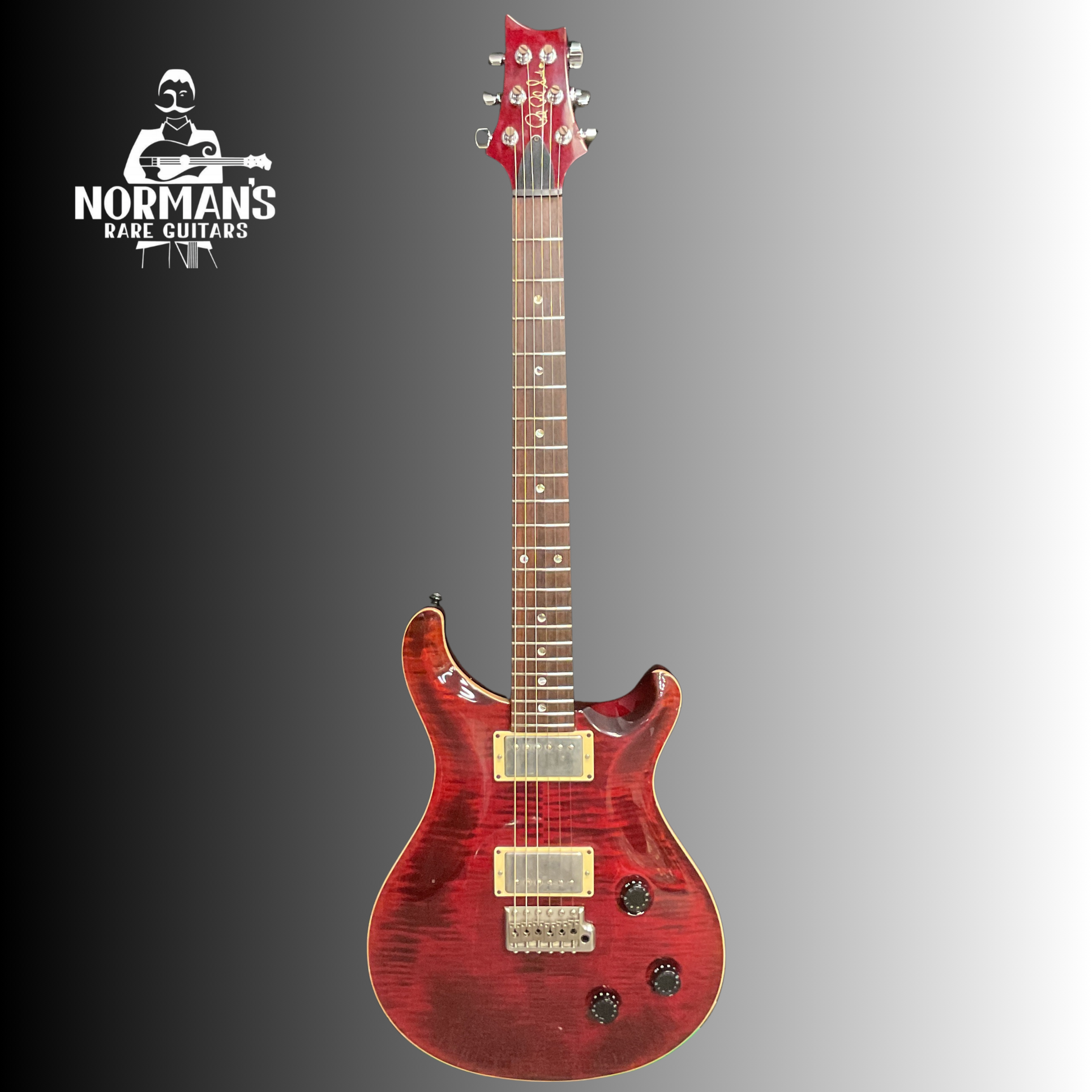A 2018 Paul Reed Smith (PRS) Custom 22 in Transparent Cherry Red is a high-end, "Core" series solidbody electric guitar known for its versatile tone and premium craftsmanship. The model code "CUM2F" likely refers to the Custom 22 Model, Tremolo bridge, and Flame Maple 10-Top (indicated by the 'F' or possibly part of the color/package code, as "10-Top" is a common upgrade) in a Transparent Cherry finish.