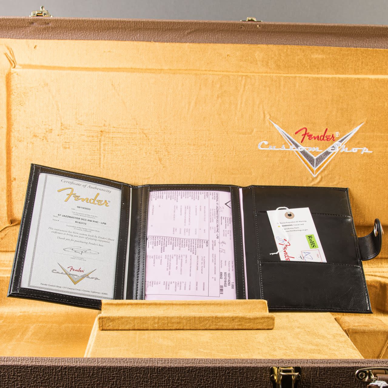This brand new Fender Custom Shop '67 Jazzmaster leans into the more refined side of offset design, with a Deluxe Closet Classic treatment that keeps things clean while adding b eautiful signs of age. Finished in Lake Placid Blue, the finish has just the right amount of sheen with an excellent reliced checking. The neck sports a comfortable '59 Esquire C profile and a bound rosewood board—details that add both feel and character. Custom Shop pickups deliver the woody, wide-range response.  A well-balanced build that nods to the past without feeling frozen in it.  Comes with the COA and OHSC.