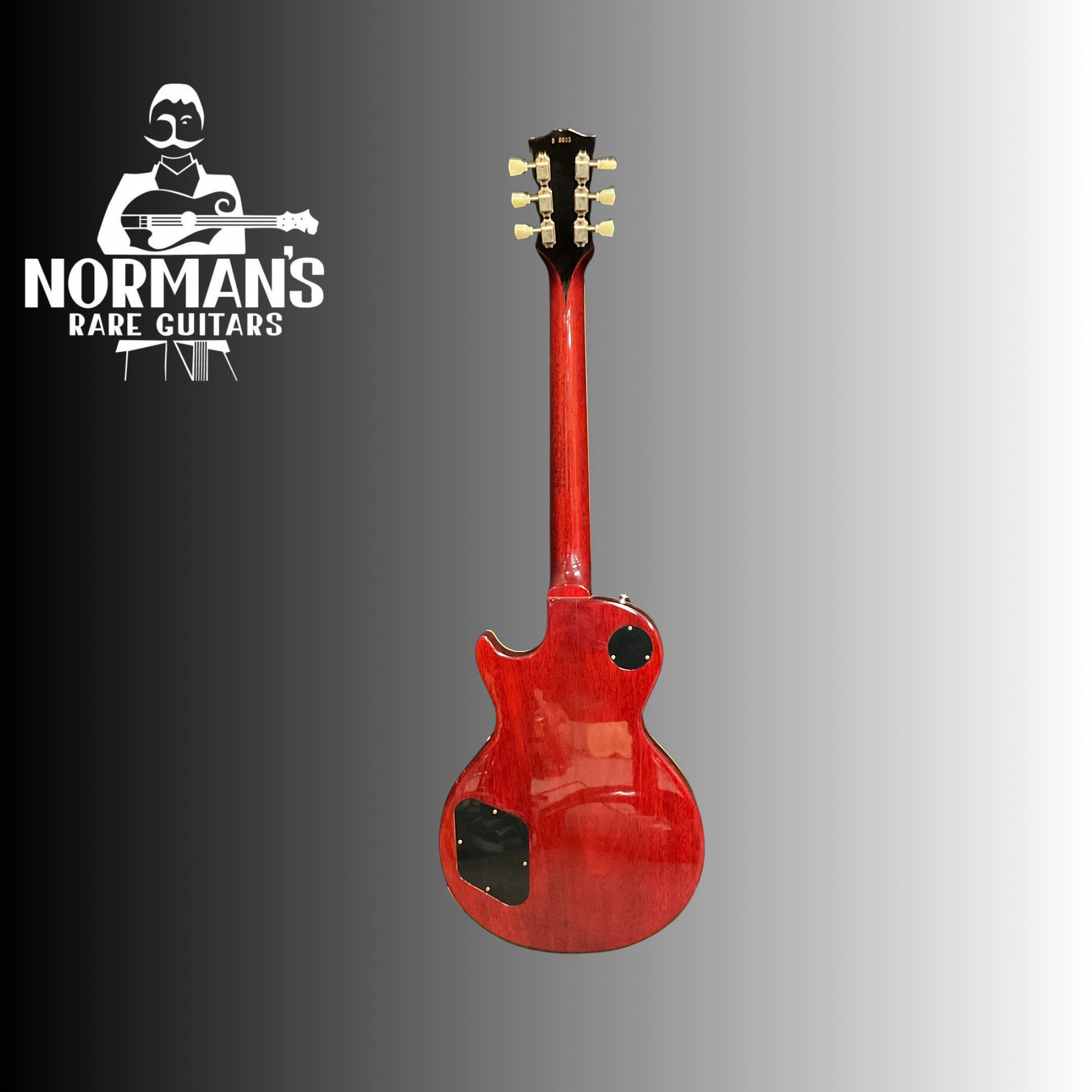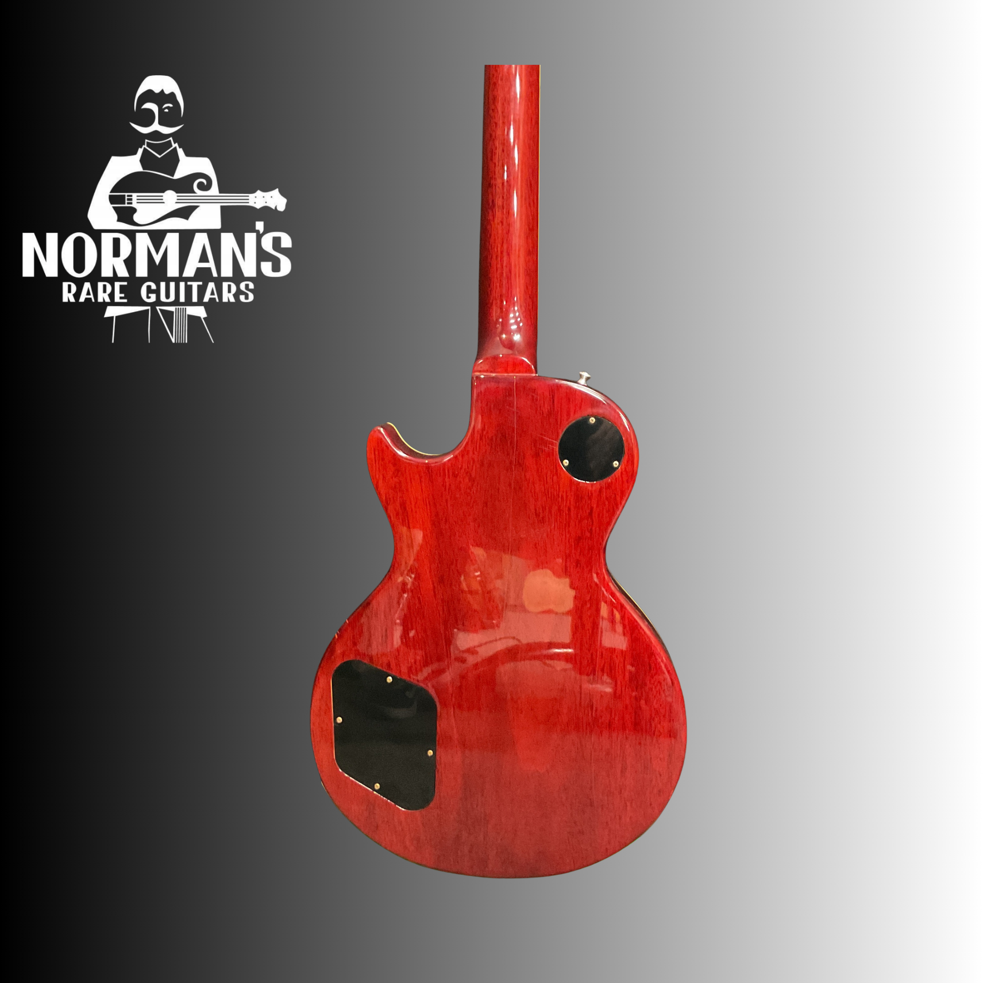 This item comes with the original hardshell case & certificate, aged nickel parts, original Kluson deluxe reissue tuning machines, original ABR-1 without wire, stop tailpiece, original frets, original electronics (non-original soldering), flame maple top, mahogany back, finish hairline cracks from the neck joint to the middle of the body (see pic), mahogany neck, rosewood fingerboard, original PAF reissue humbuckers, fingerboard radius 12", weight 7.2 lbs, condition is good -- see pics for more details.