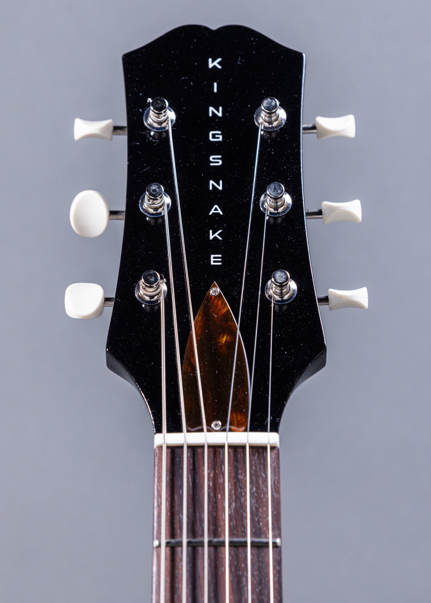 The King Snake Soulville / D in Gray Viper is the dual-pickup evolution of the minimalist Soulville solid-body. Designed to deliver a "hollow-body resonance" from a solid instrument, it features a thin, 37mm-thick Hemlock body—a spruce-like tonewood that provides acoustic-style "air" and snap. Equipped with two proprietary "Soulville Foil" pickups, it offers a wider magnetic field for an earthy, three-dimensional tone. Its distinctive snakeskin-inspired lacquer finish and lightweight construction make it a boutique favorite for blues and jazz.