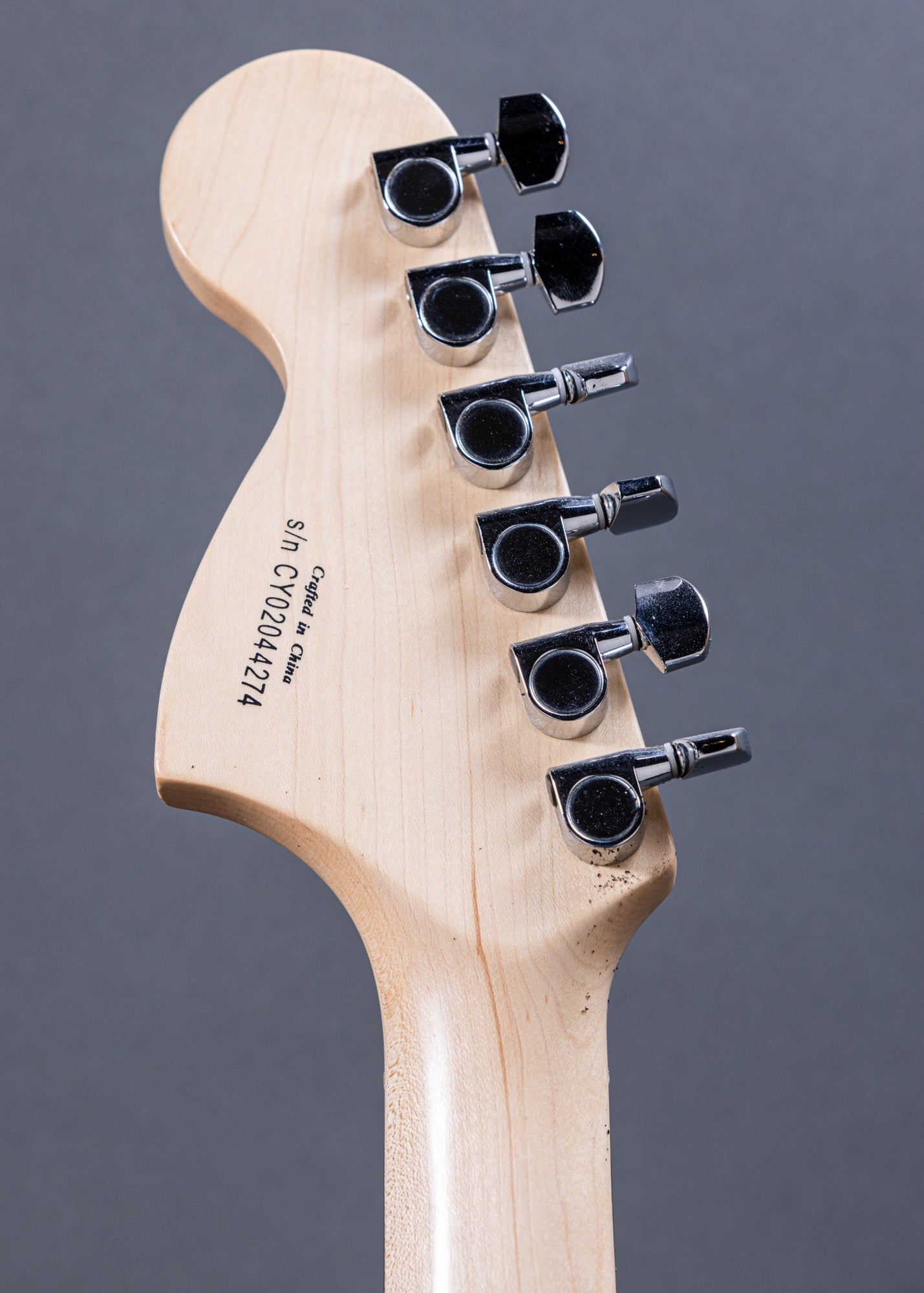 A Squier Stratocaster in Black is a budget-friendly electric guitar produced by Fender's subsidiary brand, featuring the classic double-cutaway shape and versatile single-coil or humbucker pickups. While Squier has produced many black Stratocasters since 1982, notable "Black Label" models were made in Mexico from 1992–1996, featuring high-quality US-made necks and bodies with Asian electronics. Other versions include 1980s Japanese "SQ" models and later, modern "Black & Chrome" variants from Korea or Indonesia. Production numbers for specific black models are not publicly disclosed, though they were manufactured in large quantities for the mass market.