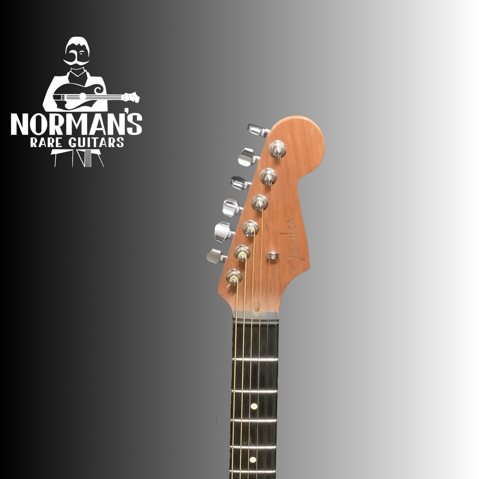 For sale is a used Fender Acoustasonic Stratocaster Natural with original hardware, original bridge, original frets, original electronics, Fender pickup, rosewood fingerboard with dot inlays, .84" depth at 2nd fret, 1.68" nut width, 5 lbs, condition is excellent--see pictures for more details.